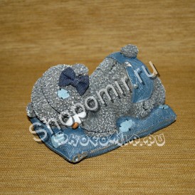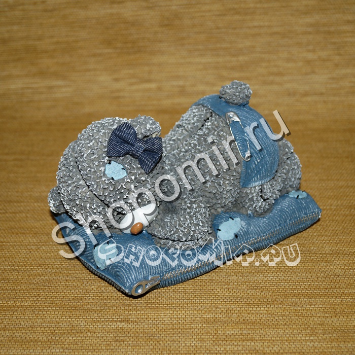 А эта копилка от shopomir сделана в виде медвежонка-девочки, об этом говорит очаровательный бантик. В целом фигурка – такой же любимый всеми серый мишка, устроившейся спать на матрасе с обычной для Тедди заплаткой, такой же, как на шерстке – это, можно сказать, его опознавательный знак. Заплатка – символ того, что Тедди так любим, что даже прохудившегося его оставили дома.