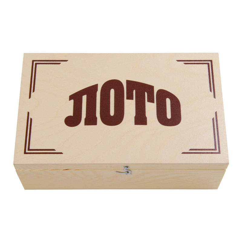 Задача игроков проста – накрыть все цифры в имеющейся карточке бочонками. Последние вынимаются из мешочка слепым методом, потом здесь невозможно шулерство. После объявления цифры игрок должен как можно быстрее отыскать ее у себя на карточке, после чего выкрикнуть ключевое слово. Первый, кто смог перекрыть все цифры на линии, или даже карточке становится победителем. Комплект бочонков, карточек и мешочек укладывается в деревянный бокс, который без труда можно брать с собой на пикники.
