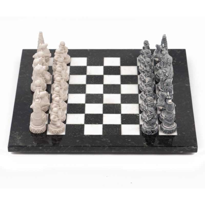 Шахматы "Северные народы" змеевик, мрамор
